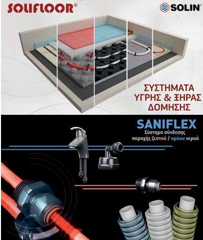 Καινοτόμες λύσεις – υπηρεσίες Ειδική μνεία αξίζει στα συστήματα ενδοδαπέδιας θέρμανσης, υγρής και ξηράς δόμησης Solifloor, που αναπτύχθηκαν ακολουθώντας τη φιλοσοφία της εταιρείας για καθολική κάλυψη των αναγκών ενός σύγχρονου έργου. Παρέχουν πληρότητα στην ενδοδαπέδια θέρμανση με διάφορες επιλογές στην πλάκα