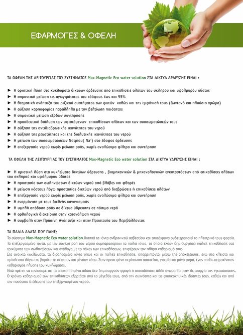 ΤΑ ΟΦΕΛΗ ΤΗΣ ΛΕΙΤΟΥΡΓΙΑΣ ΤΟΥ ΣΥΣΤΗΜΑΤΟΣ Max magnetic eco water solution ΣΤΑ ΔΙΚΤΥΑ ΑΡΔΕΥΣΗΣ ΕΙΝΑΙ :