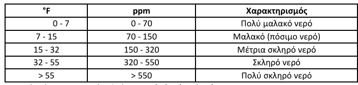 Ο χαρακτηρισμός της ποιότητας του νερού εμπειρικά, μπορεί να γίνει με βάση την παρακάτω κλίμακα τιμών ολικής σκληρότητας: