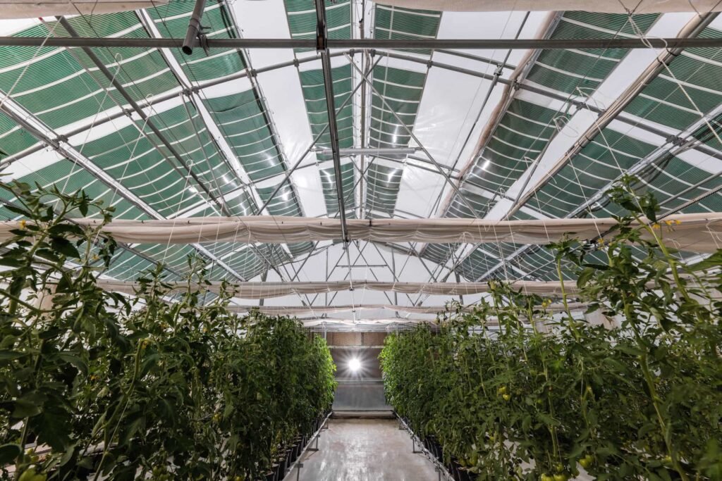 Θερμοκήπια με υδροπονία, όπου επιτυγχάνεται υψηλή παραγωγικότητα με χαμηλότερη κατανάλωση πόρων.